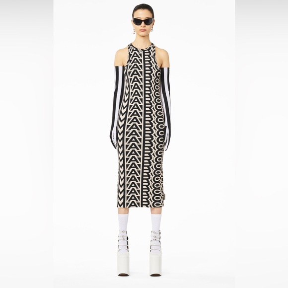 Utterly stunning racerback dress featuring the MARC (Jacobs) monogram graphic (and no bra needed!). The graphic is so cool and abstract you really don’t need to be a Marc Jacobs addict (like I don’t own a single MJ bag 😆). Sold out online here: https://www.marcjacobs.com/us-en/the-monogram-racer-rib-dress/2P3RDR006C11-004.html