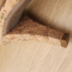 Showing subtle signs of age in cork shedding - please see photos. 3.75” cork wrapped heels. Canvas upper with leather insoles and rubber soles. Size is not listed but they are my size at a US 6