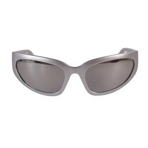 Turn heads with these bold and futuristic Marc Jacobs Wraparound Sunglasses, featuring a sleek silver frame paired with silver mirrored lenses for a standout, fashion-forward vibe.