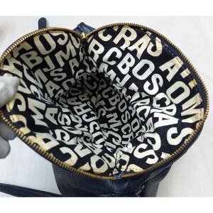 Marc Jacobs Natasha Blue Pebbled Leather Zipper Pocket Crossbody Bag
