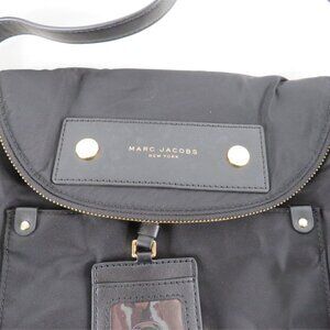 This Marc Jacobs Natasha shoulder bag is crafted from durable black nylon, offering a sleek and versatile accessory suitable for everyday use. Its minimalist design combines functionality with classic style.