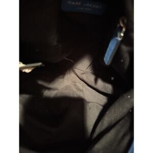 The Marc Jacobs Blue Leather Crossbody Bag is a stylish and practical accessory for women. This medium-sized rectangular bag features a solid blue exterior with a pebbled finish, gold hardware accents, and a snap & zip closure. The crossbody strap color is also blue, making it a coordinated and fashionable choice for any occasion. The bag includes is an adjustable strap feature, and a fabric lining for added comfort and convenience. This versatile bag by Marc Jacobs is a must-have for any fashion-forward individual looking for a trendy and functional handbag. The scratching on metal, and some rubbing on leather, please see pics.