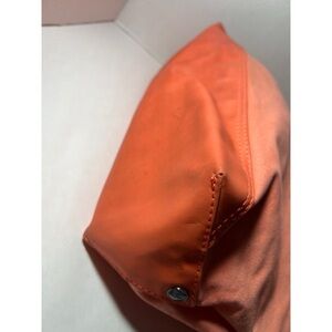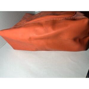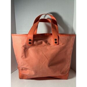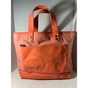 Stylish orange tote bag by Marc Jacobs. Features a front pocket and sturdy handles. Some marks inside and out