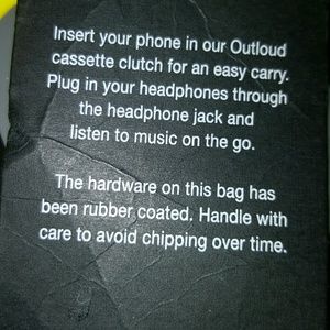 Get into the groove with this funky-fresh crossbody bag that mimics an '80s cassette player topped with a playful push-button clasp. Remove the strap for a cute clutch carrying option. A small port adds access for headphones so you can listen to your tunes in style.