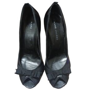 Marc Jacobs Peep Toe Black Leather Ribbon Bow Heels size 9
