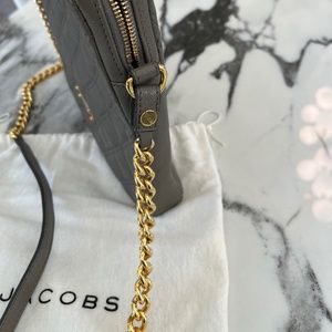 Marc Jacobs Quilted Cross Body Leather Purse iPad Holder - Grey with Gold Chain