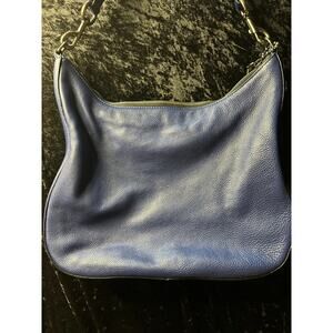 Marc Jacobs Recruit Leather Hobo Shoulder Bag Blue Pebbled Leather