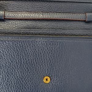 Color: Navy blue with burgundy trim, gold-tone hardware