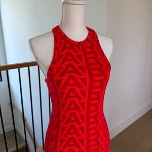 Marc Jacobs Red Orange The Monogram racer rib dress midi
