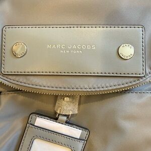 This Marc Jacobs crossbody bag in gray offers a sleek look, making it a versatile accessory for any occasion. Its minimalist design and textured leather finish add a touch of elegance to your everyday look.