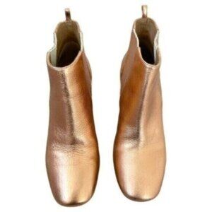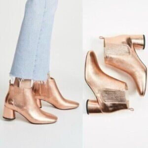 Tags: metallic, shiny, shimmer, rose gold, ankle, leather, bootie, block heel, oval heel, geometric, chelsea, holiday, cocktail, christmas, party, new years eve, nye, office, workwear, career, professional, taylor swift, eras tour, sparkle
