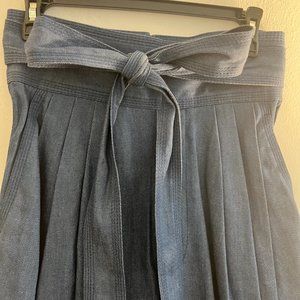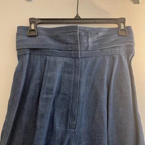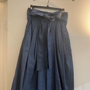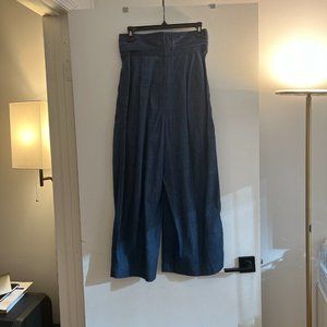 Wide leg denim culottes with bow at the waist, zip back closure