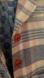 New condition. 100% wool plaid coat. Contrasting lining Cotton floral 1920s print. Interesting detail at cuffs and back of coat. Clear pinky red buttons. Size 6. Narrowish cut. Rare. Runway photo in pix.