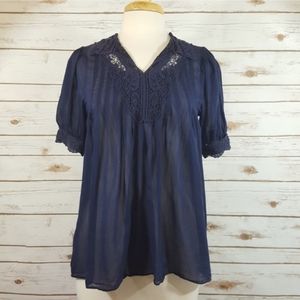 Marc Jacobs | Sheer Navy Silk Lace Pleated Blouse