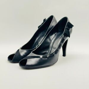 Marc Jacobs Shoes Womens 7.5 Black Velvet Patent Leather Heels Bow Peep Toe Pump