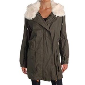 Long sleeve wrap dress with ruffle collar and sleeves, long silky ties around waist. Brand new with tags. Size 10.