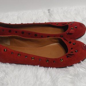Marc Jacobs Studded Red Leather Suede Ballet Flat