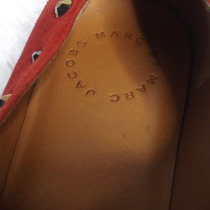 Marc Jacobs Studded Red Leather Suede Ballet Flat Shoes -37.5