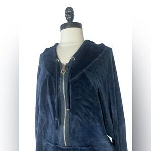 Marc Jacobs Swimwear Cover Up Size M Blue silver Metallic Logo Velour Hooded