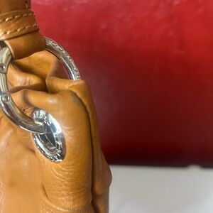 Elegant tan leather shoulder bag. Features sturdy handles and chic design. Ideal for daily use.
