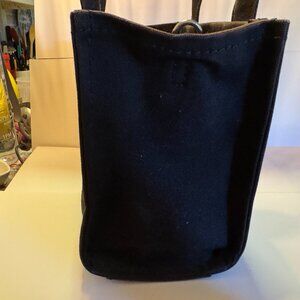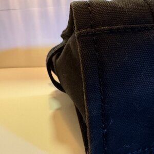 Pre-used, Fabric is faded on the handles as well as the top of bag and the bags edges - never used the strap and it looks new. Fabric is cotton canvas has a chunky top zipper closure. 10"L 5"D x 8"H - Purchased from Nordstrom and the barcode inside the bag will affirm this. The bag is designed to fade and relax giving it a broken in look.