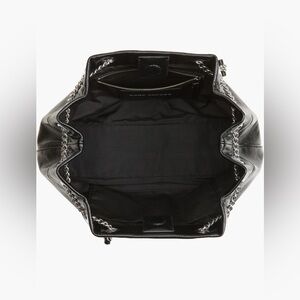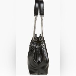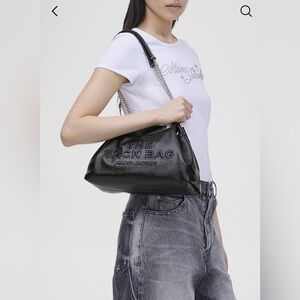 The Marc Jacobs Black Ruched Shoulder Bag combines elegance with functionality, featuring a sophisticated gathered leather design. Its silver-tone chain strap adds a touch of glamour, while the structured yet relaxed shape makes it a versatile accessory for any occasion.
