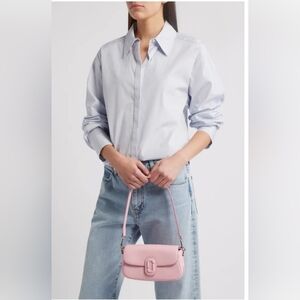 NWT. Marc Jacobs. A tonal double-J logo details the flap of this leather shoulder bag you can carry on a gleaming chain or sling over your shoulder with the sleek leather strap.
