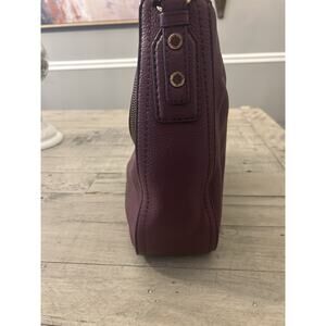 This purse was not used much! One little indentation, otherwise in great condition. No notable flaws. Color is like a deep wine/burgundy. Beautiful! Please see photos for measurements.