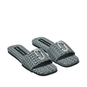 Chic navy slides featuring a bold pattern. Silver logo detail adds elegance. Ideal for everyday style.