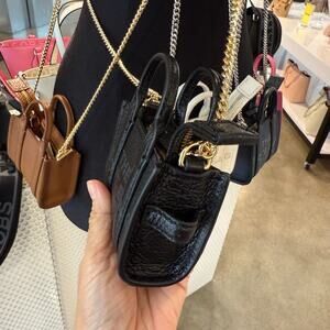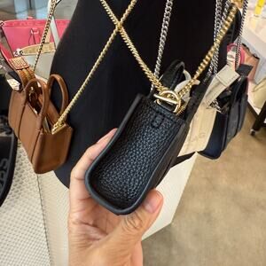 Made from high-quality leather, the Nano Tote Crossbody is a small, stylish bag with a playful yet polished look. It has a chain strap, a top zipper to keep items secure, and the signature Marc Jacobs logo. Designed as a mini version of the original Tote Bag, it’s perfect for carrying small essentials like cash, cards, lipstick, earbuds, and keys.