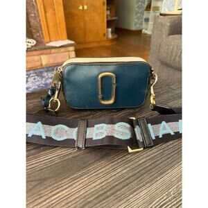 Marc Jacobs The Snapshot New Blue Sea Multi/Gold Cross Body Camera-Style Bag