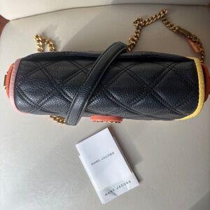 Marc Jacobs The Status Flap Crossbody bag in black quilted leather with multi-color trim. Some wear on the edges and bottom but really in great condition!