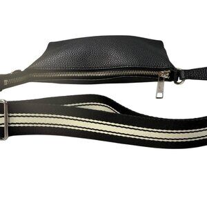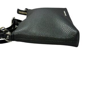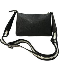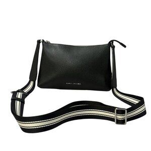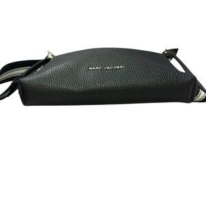 The Marc Jacobs The Swifty Crossbody is a stylish leather handbag designed for women. Featuring a trendy black exterior and gold hardware accents, this crossbody bag has a zip closure and a versatile black and white handle/strap. The Swifty model offers inner pockets for organization and an adjustable strap for added convenience. Perfect for everyday use, this Marc Jacobs handbag combines fashion and functionality in a compact and trendy design.