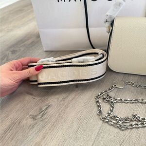 Marc Jacobs The Turn Lock, Logo, Leather Mini Crossbody Bag in Beautiful Marshmallows Color.