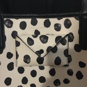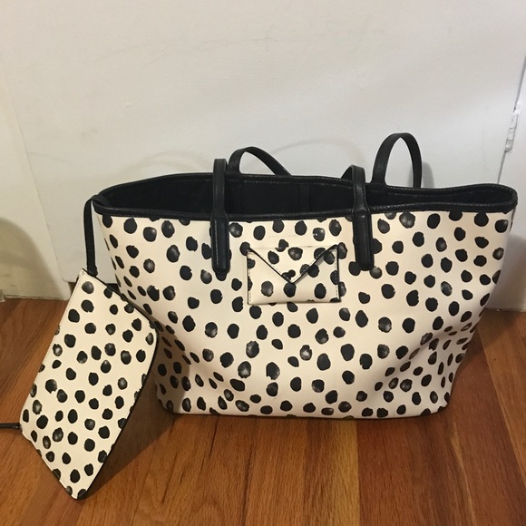 Super cute black polka dot tote. Only used a few times and outside is in great condition. Stains on inside shown in pic.
