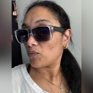 Stylish transparent frames with sleek tinted lenses. Comes with a vibrant yellow case.