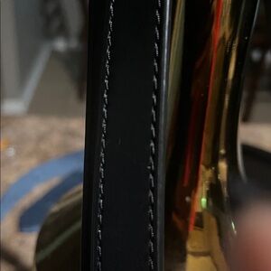 Elegant blue handbag by Marc Jacobs. Features sleek black handles.