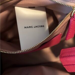 Stylish Marc Jacobs tote in vibrant pink leather. Features durable handles and elegant design. Perfect for daily use.