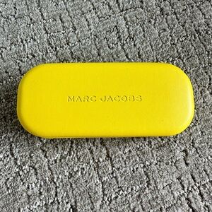 Sleek yellow case with embossed Marc Jacobs logo. Perfect for stylish eyewear protection.