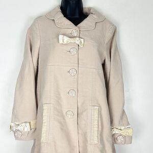 Marc Jacobs Vintage Single Breasted Bow 100% Cotton Long Trench Peacoat Size XS