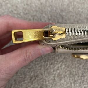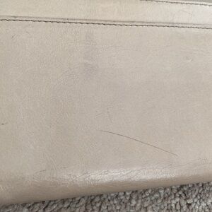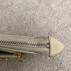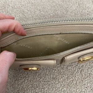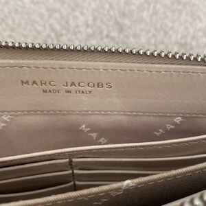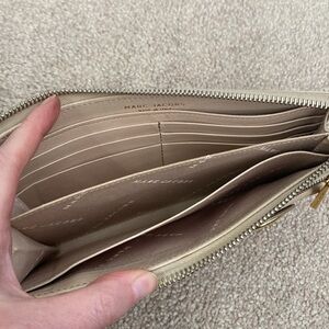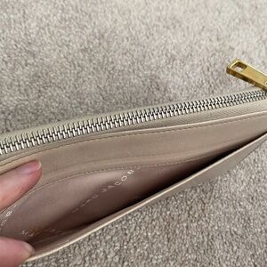 Marc Jacobs Nude Leather Wallet. Condition is fair. There are many imperfections but the wallet is still beautiful. Interior has organization and space for 6 cards. All zipper fully functioning.