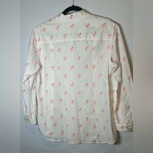 Chic button-down shirt with pink flamingo design. Rhinestones on the flamingos and on the snap buttons. Such a fun shirt!