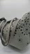 seafoam laser cut leather Marc Jacobs wingman tote with silver tone hardware, dual flat shoulder straps featuring stud embellishments throughout, scalloped trim, black hide interior and open top, strap drop 10".