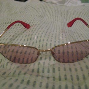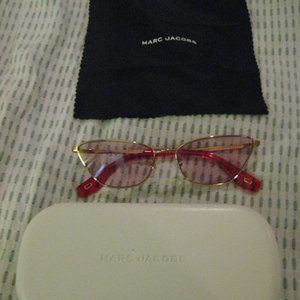 These are tinted Marc Jacobs wire framed glasses with authentic case and cleaning cloth. My friend worked in a high end glasses store and got these for me a few years ago. They are super fantastic and in great condition (never worn by me) because I need to put a prescription in them and never did. If anyone wants a fun pair of designer sunnies for the summer these are it.