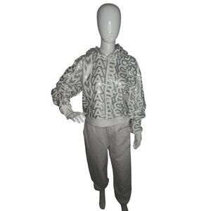Marc Jacobs Women's Monogram Cropped Hoodie and Pants 2 PC Set Silver White Size