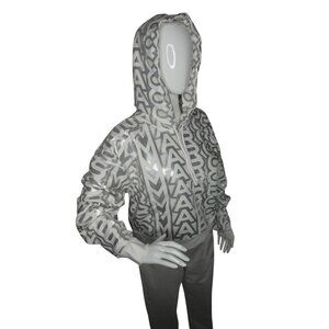This stylish Marc Jacobs monogram cropped hoodie and pants set in silver white offers a chic, comfortable look. Perfect for casual outings or lounging at home, it features a trendy design and high-quality materials for a luxurious feel.