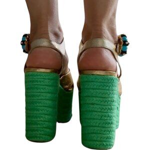 Marc Jacobs Women's Rowan Leather Espadrille Platform Wedge Sandals Gold Sz. 6