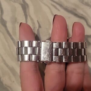 Marc Jacobs Women's Silver Watch. This is for a small wrist. No additional links. Bracelet has some scratches. I just replaced the battery-so its new. EUC