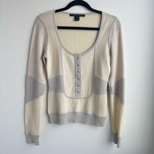 Marc Jacobs Women’s Small Knit Henley Sweater Beige Gray Patchwork Long Sleeves