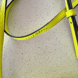 MARC by MARC Jacobs Small highlighter yellow purse please see photos for marks and discoloration, silver hardware black trim adjustable strap this bag measures about 5 1/4“ x 2 1/4“ x 5“ with a current strap drop of 22 1/2 inches